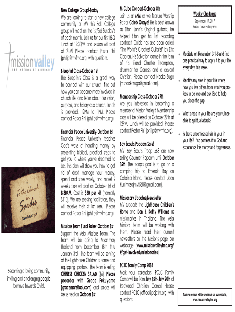 New College Group! Today We are looking to start a new college community at MV this Fall! College group will meet on the 1st/3rd Sundays of each month. Join us for our first BBQ lunch at 12:30PM and