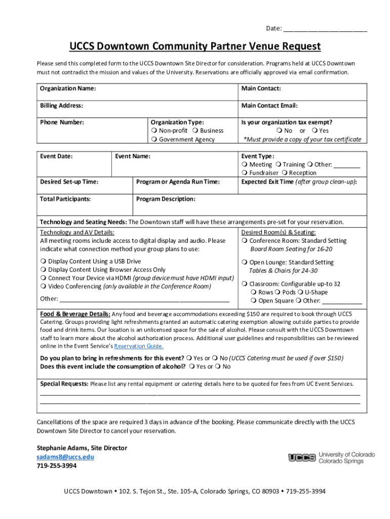 Get the free UCCS Downtown Community Partner Venue Request