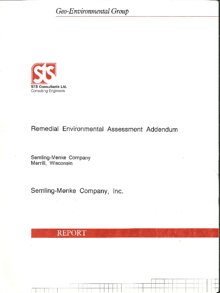 Environmental Group STS Consultants Ltd. Consulting EngineersRemedial Environmental Assessment AddendumSemlingMenke Company Merrill, WisconsinSemlingMenke Company, Inc.\'. REP ORTIZ I I I I I I I