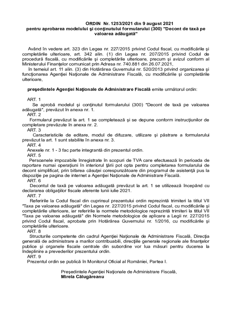 ODIN NR. 1253/2021 din 9 August 2021