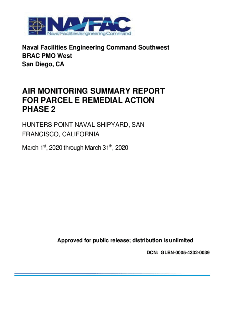Naval Facilities Engineering Command Southwest BRAD PMO West San Diego, CHAIR MONITORING SUMMARY REPORT FOR PARCEL E REMEDIAL ACTION PHASE 2 HUNTERS POINT NAVAL SHIPYARD, SAN FRANCISCO, CALIFORNIA