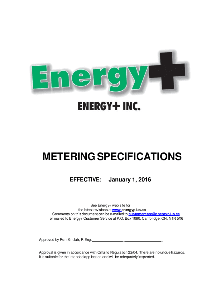 METERING SPECIFICATIONS EFFECTIVE:January 1, 2016See Energy+ website for the latest revisions at www.energyplus.ca Comments on this document can be emailed to customercare@energyplus.ca or mailed