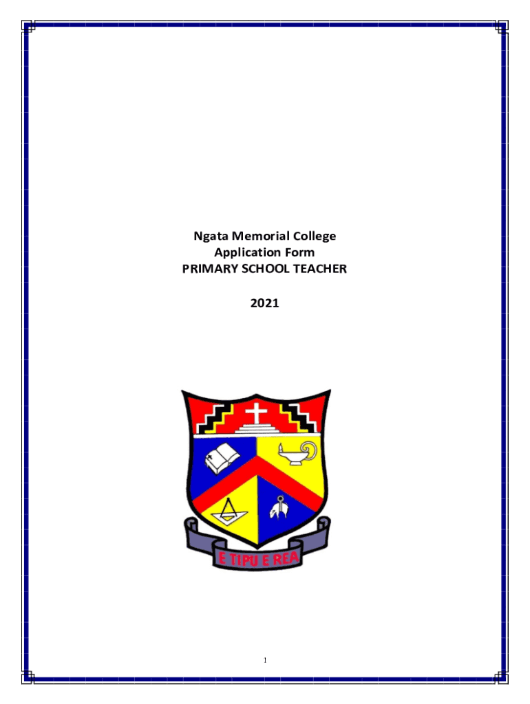 Data Memorial College Application Form PRIMARY SCHOOL TEACHER 20211Ngata Memorial College DECLARATION The Board of Trustees has a policy to employ the best person for the job and is a good employer.