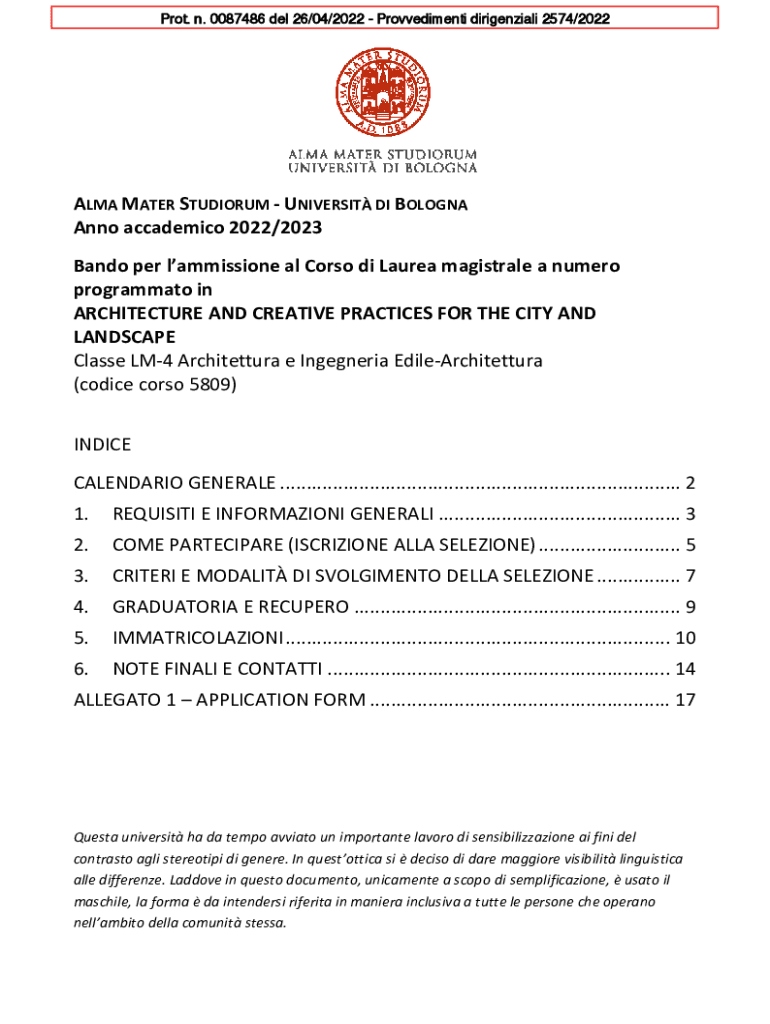 Plot. n. 0087486 Del 26/04/2022 Provvedimenti dirigenziali 2574/2022ALMA MATER STUDIOUS UNIVERSITY DI BOLOGNA Anna academic 2022/2023 Band per commission all Torso di Laura magistrate a number programmatic