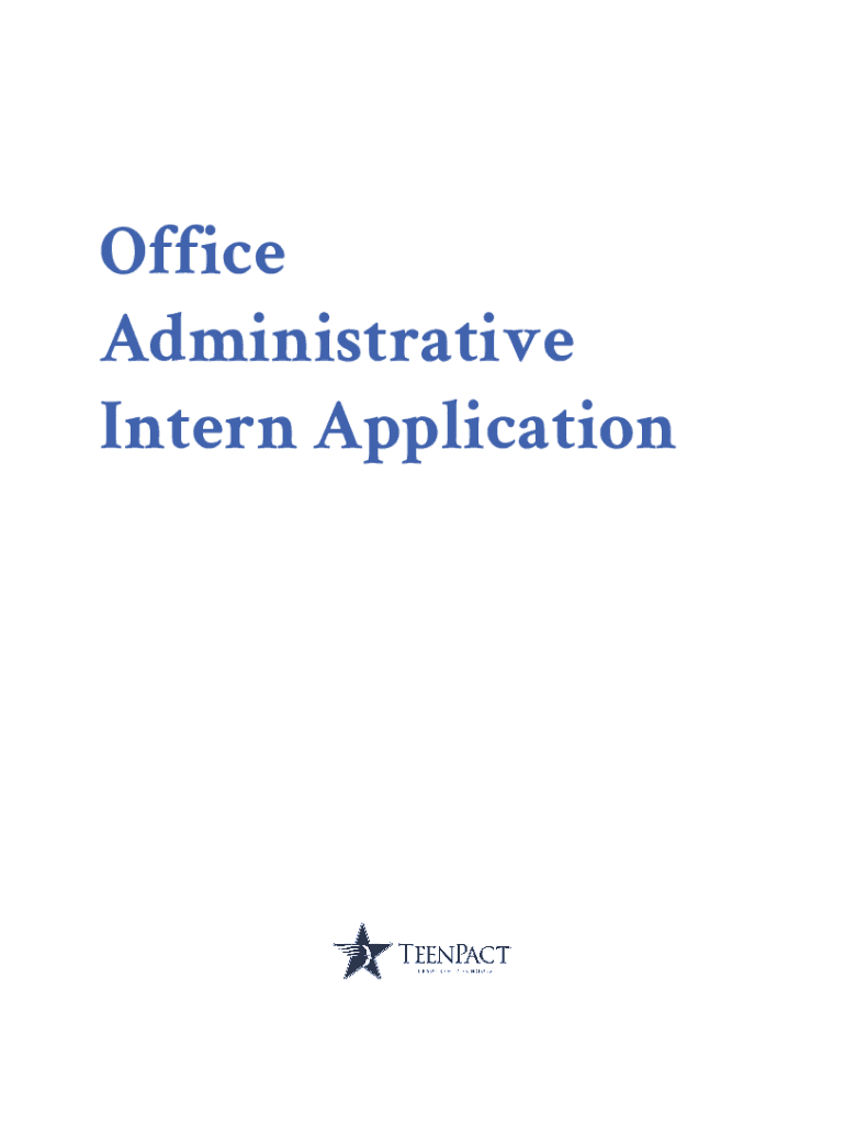 Office Administrative Intern ApplicationAdministrative Intern: Events Team OVERVIEW The Administrative Intern serves in the National Office from January June as support for the Events Team during