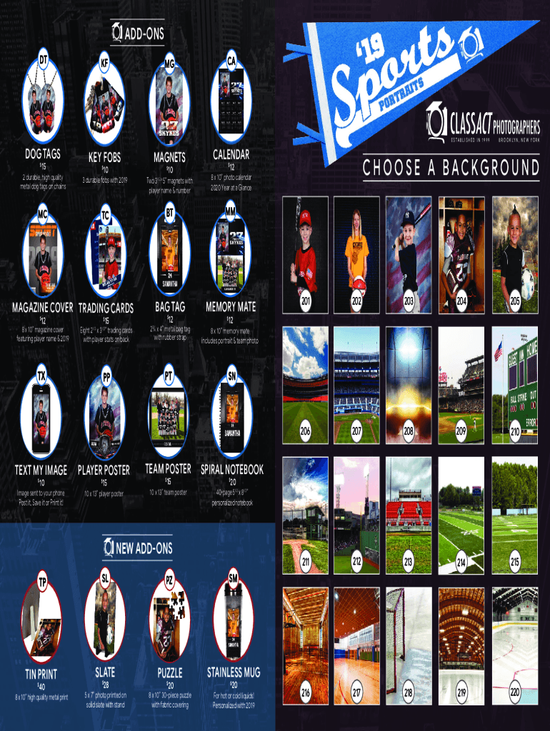ADD-ONS DTKFMGCAE S TA B L I S H E D I N 1 9 9 9DOG TASKED FOBSMAGNETSCALENDAR2 durable, high quality metal dog tags on chains3 durable fobs with 2019Two 3 5 magnets with player name & number8 x 10