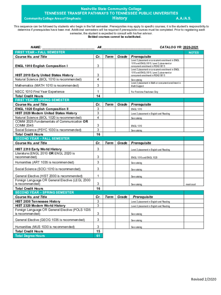 Get the free Nashville State Community CollegeTN Transfer Pathway - ww2 nscc