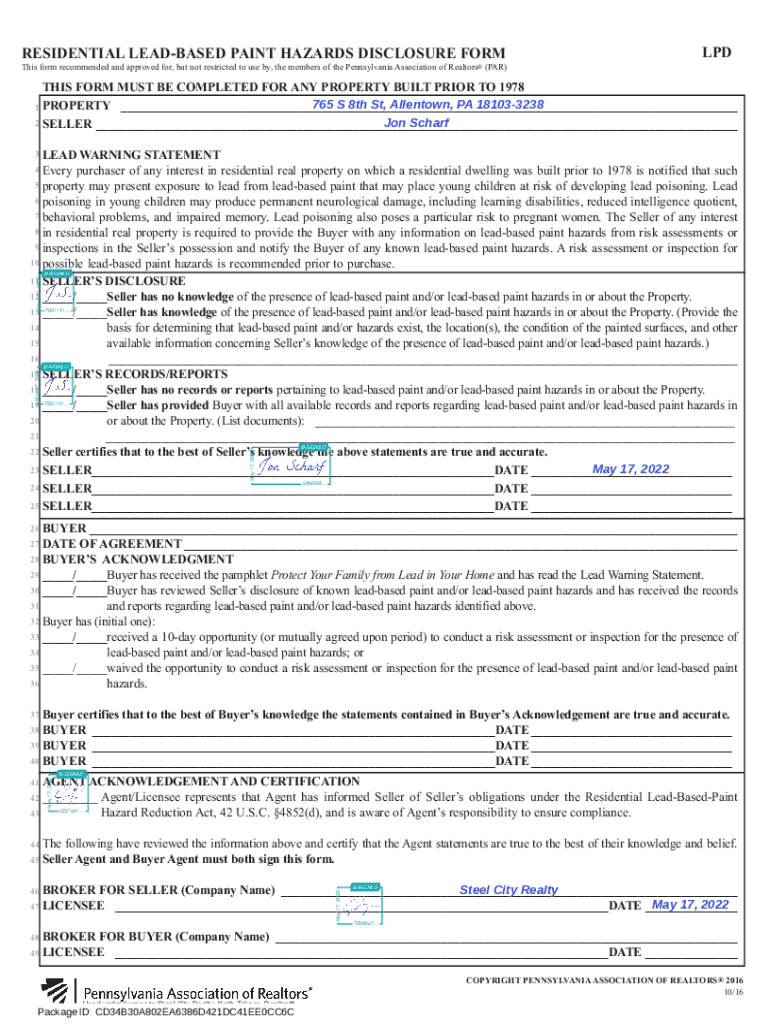 Get the free resiDentiaL LeaD-BaseD Paint haZarDs DisCLosUre forM LPD