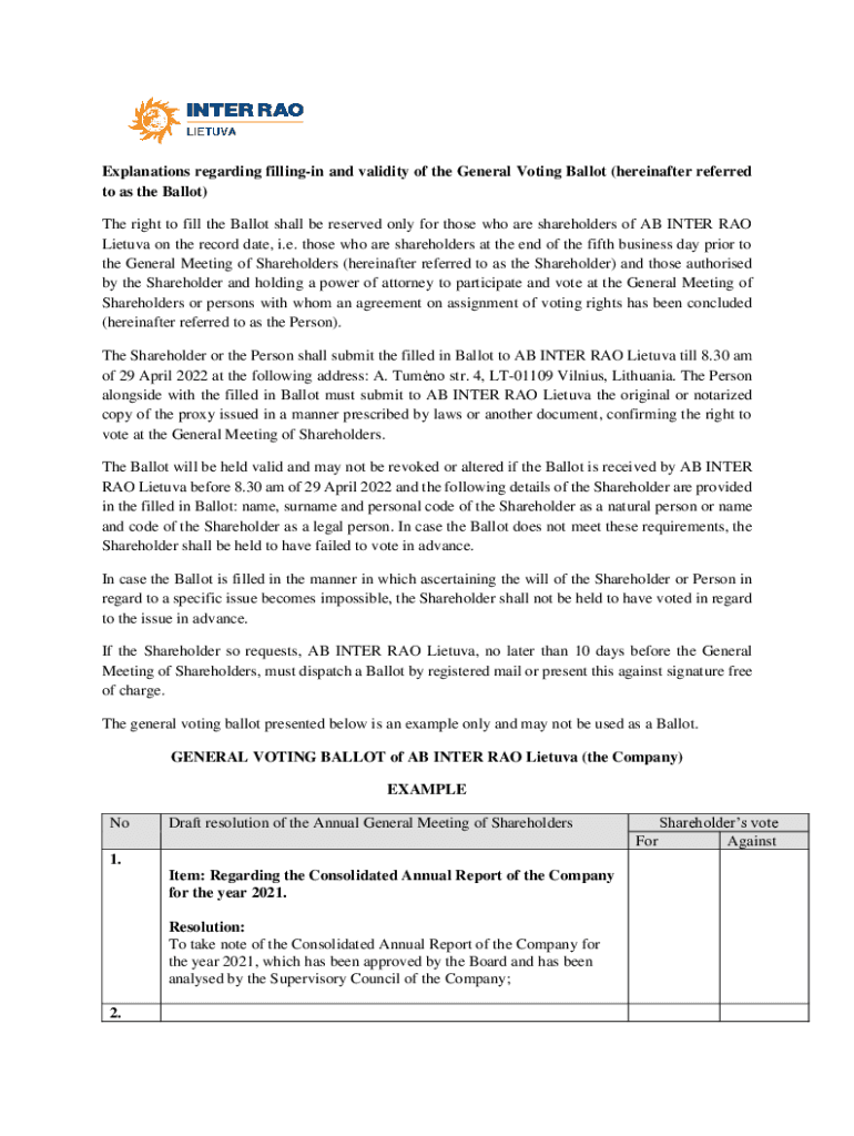 Explanations regarding filling in and validity of the General Voting Ballot (hereinafter referred to as the Ballot) The right to fill the Ballot shall be reserved only for those who are shareholders