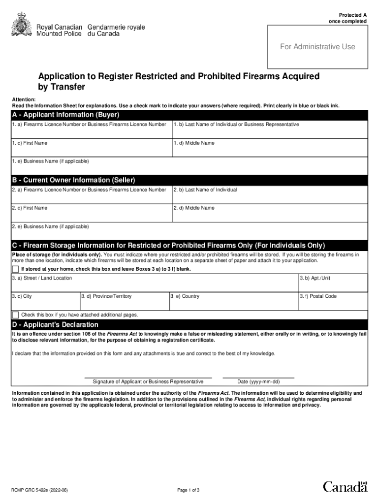 Information Sheet: Application to Register Restricted and Prohibited Firearms Acquired by Transfer Information Sheet Ce formula ire est disposable en Francis. Before you Start Use this form or call