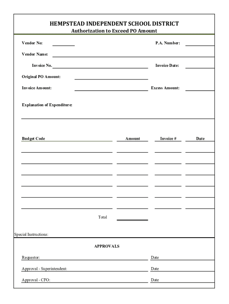 Get the free Form - Authorization to Exceed PO Amount.xlsx