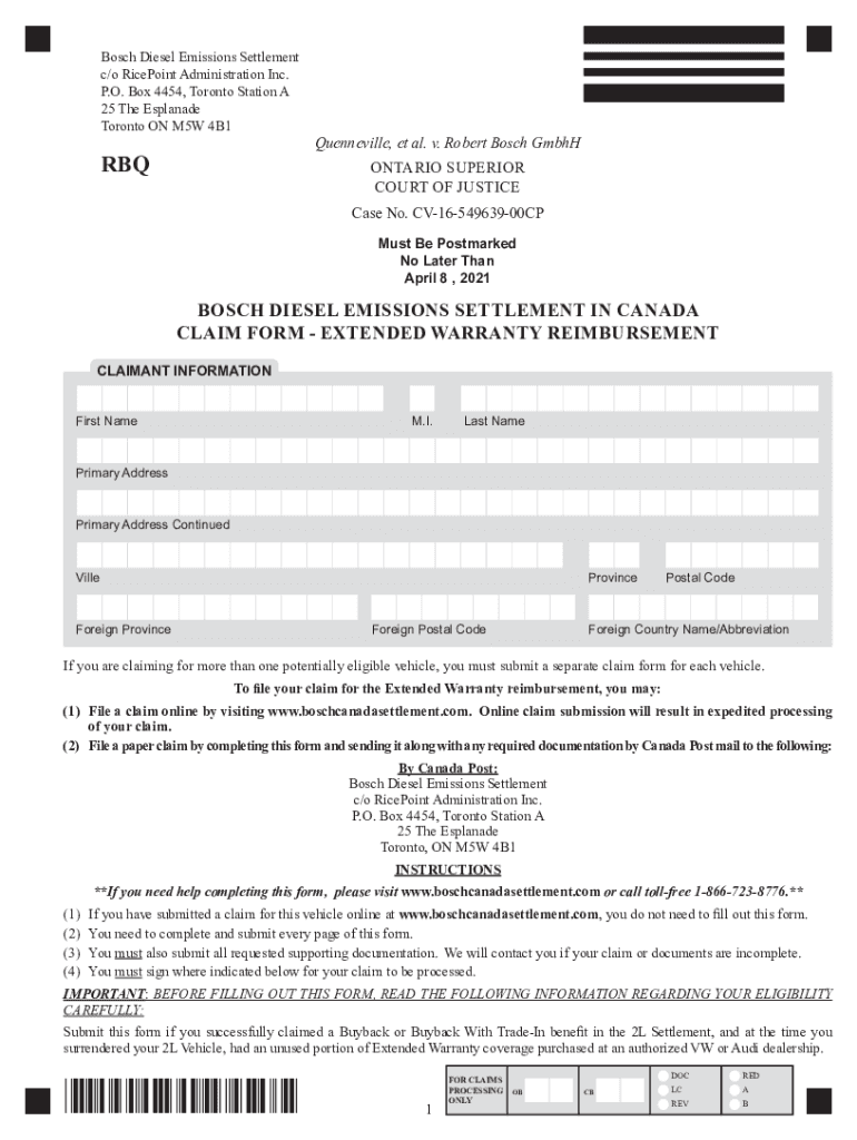 Get the free www.boschcanadasettlement.commedia3197165BOSCH DIESEL EMISSIONS SETTLEMENT IN CANADA...