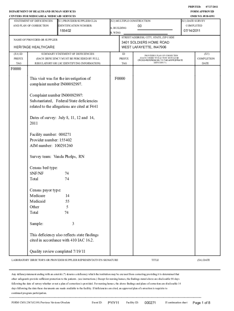 Get the free F0000 This visit was for the investigation of complaint number ...
