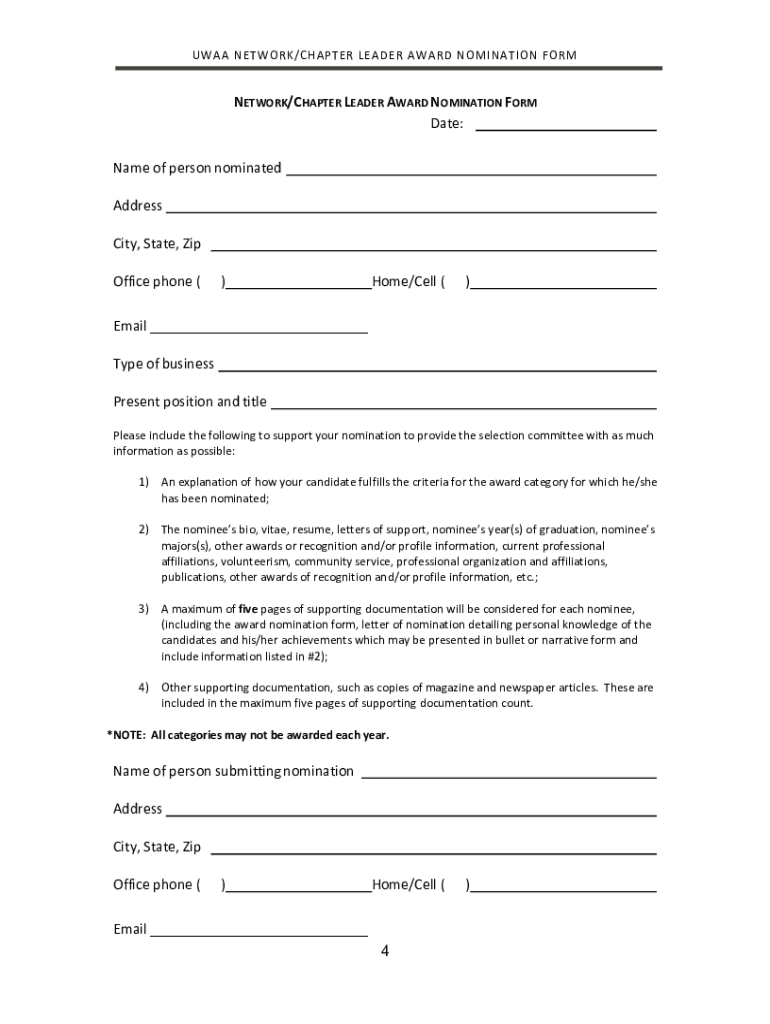 You can fill out the nomination form online on the designated platform provided by the networkchapter.