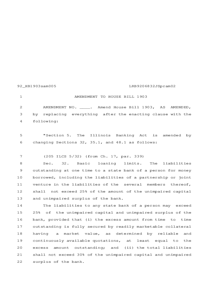 92_HB1903sam005LRB9206832JSpram021AMENDMENT TO HOUSE BILL 19032AMENDMENT NO. ___.3by4following:5replacing\” Section 5. Amend House Bill 1903,everythingTheASafter the enacting clause with theIllinoisBankingActischanging