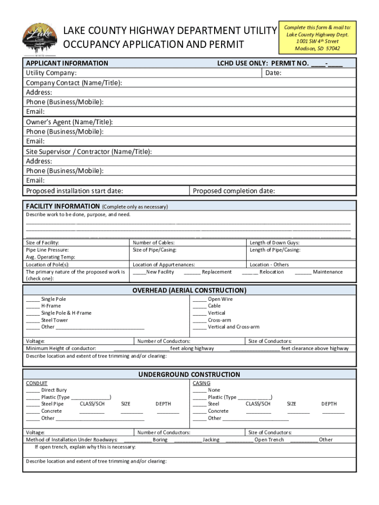 Get the free LAKE COUNTY HIGHWAY DEPARTMENT UTILITY Complete this form ... - Microsoft