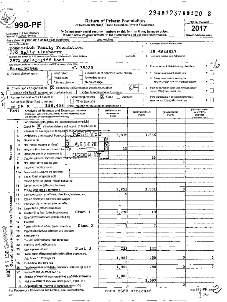 555312949123709120 Form 990\'Return of Private Foundation or Section 4947(a)(1) Trust Treated as Private FoundationP2017^ Do not enter social security numbers on this form as it may be made public.