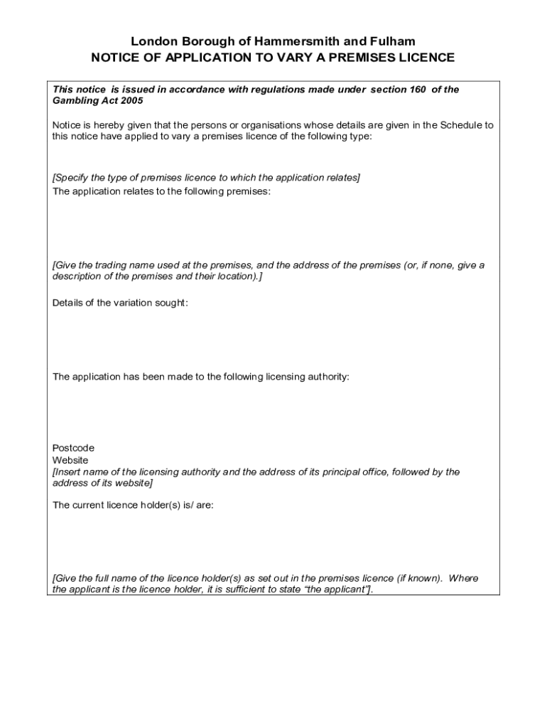 Get the free NOTICE OF APPLICATION TO VARY A PREMISES LICENCE - London Borough of ...