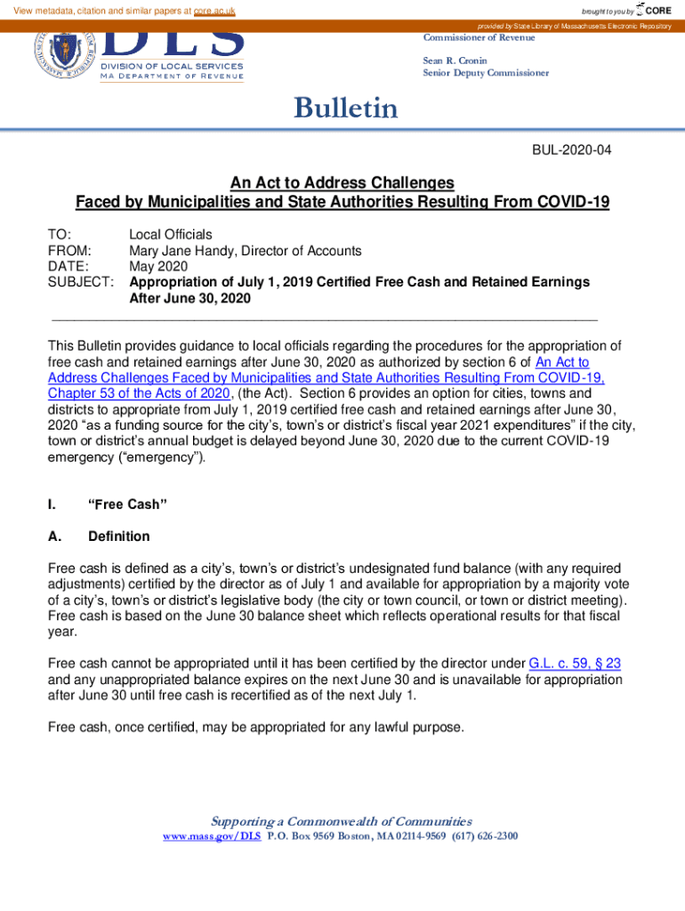 View metadata, citation and similar papers at core.ac.brought to you byCOREprovided by State Library of Massachusetts Electronic Repository Geoffrey E. Snyder Commissioner of Revenue Sean R. Cronin