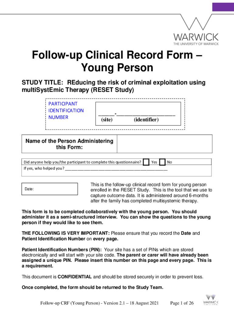 Get the free warwick.ac.ukfacsocFollow-up Clinical Record Form Young Person - warwick.ac.uk - war...