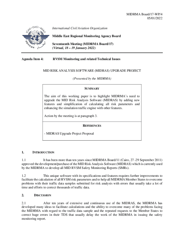 MIDRMA Board/17WP/4 05/01/2022 International Civil Aviation Organization Middle East Regional Monitoring Agency Board Seventeenth Meeting (MIDRMA Board/17) (Virtual, 18 19 January 2022) Agenda Item