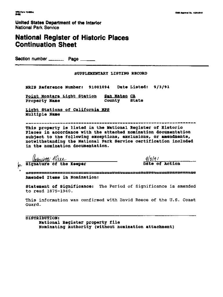Not Form 1040040 MB Approx** No. 10244018United States Department of the Interior National Park ServiceNational Register of Historic Places Continuation Sheet Section number ___ Page ___ SUPPLEMENTARY