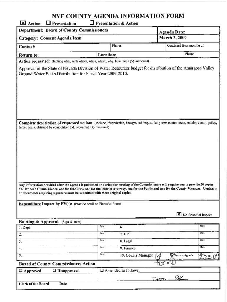 Nye County Agenda Information is not the form you're looking for?Search for another form here.