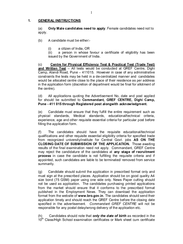 1 1.GENERAL INSTRUCTIONS (a) Only Male candidates need to apply. Female candidates need not apply. (b)A candidate must be either:(i) a citizen of India, OR (ii) a person in whose favor a certificate