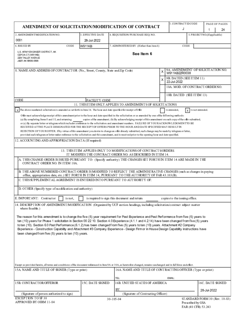 Start by reviewing the original solicitation or modification document to understand the changes that need to be made.