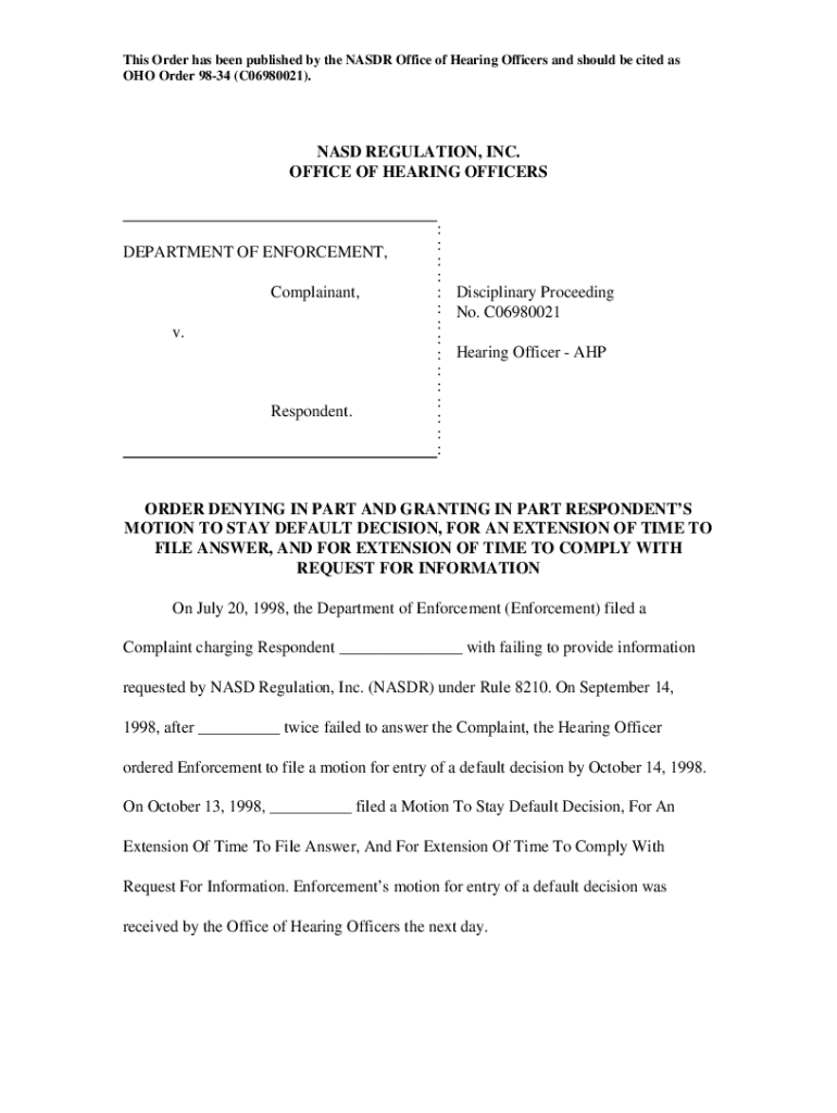 Get the free NASD REGULATION, INC. OFFICE OF HEARING OFFICERS DEPARTMENT OF ... - FINRA