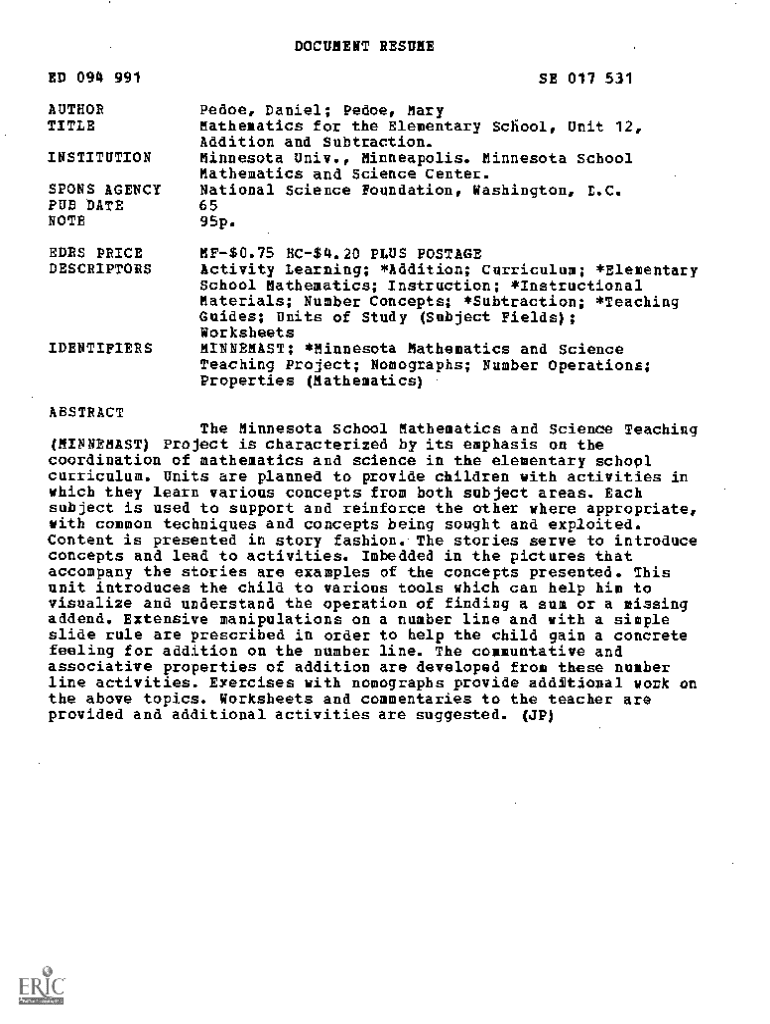 Get the free Mathematics for the Elementary School, Unit 12, Addition and ...