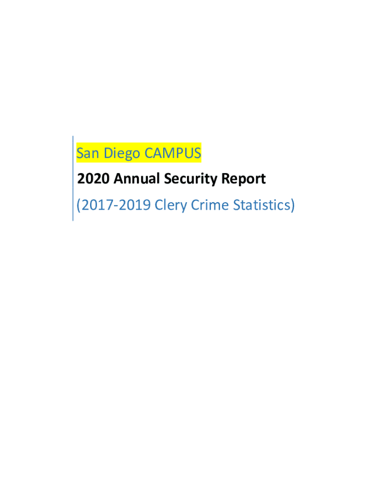San Diego CAMPUS 2020 Annual Security Report (20172019 Clergy Crime Statistics)Table of Contents The Jeanne Clergy Disclosure of Campus Security Policy & Campus Crime Statistics Act1Preparing the