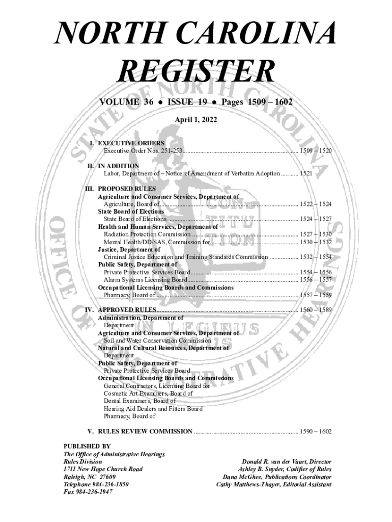 Get the free North Carolina RegisterNC OAHNorth Carolina RegisterNC OAHFederal Register :: Execut...