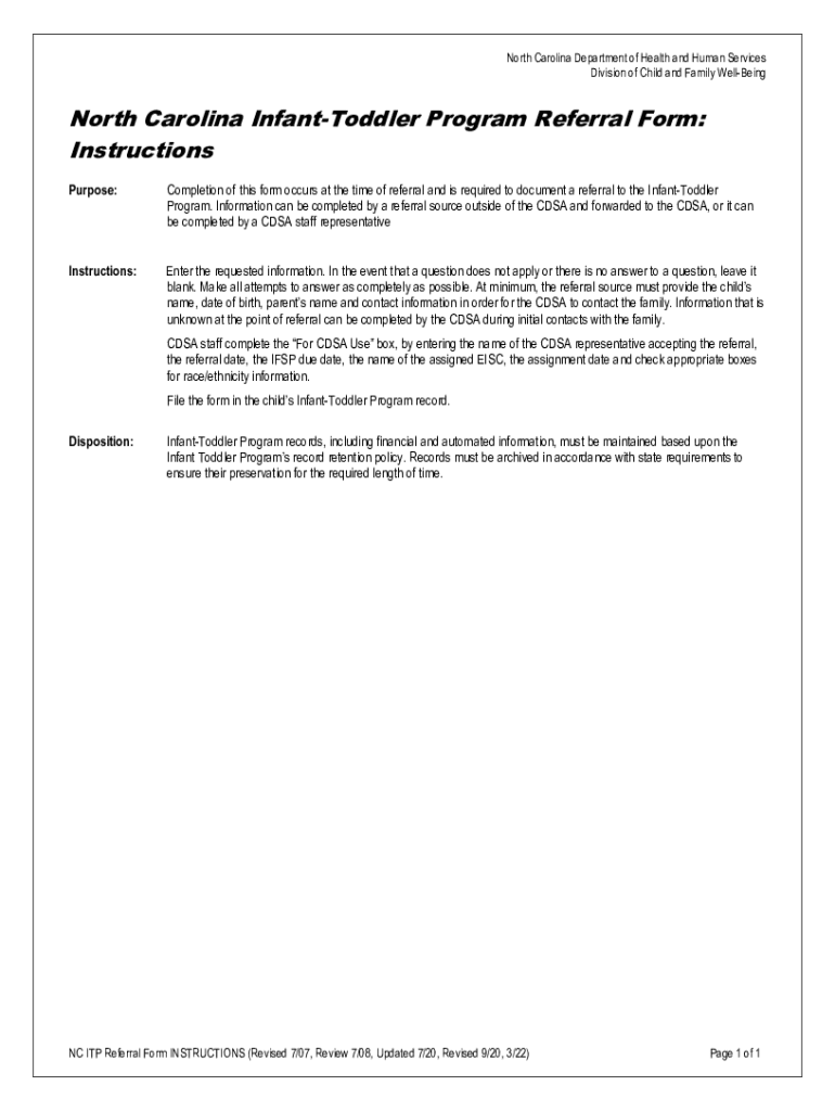 North Carolina Department of Health and Human Services Division of Child and Family WellBeingNorth Carolina InfantToddler Program Referral Form: Instructions Purpose:Completion of this form occurs