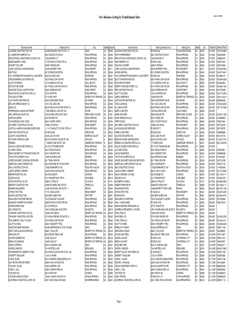 Date: 6/13/2007New Business Listing by Establishment DateBusiness Name