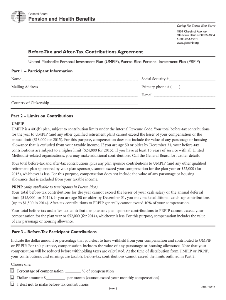 Participants who are enrolled in the United Methodist Personal Investment Plan or Puerto Rico Personal Investment Plan are eligible to fill out the Contribution Agreement. Make sure you meet the specific requirements set by your plan.