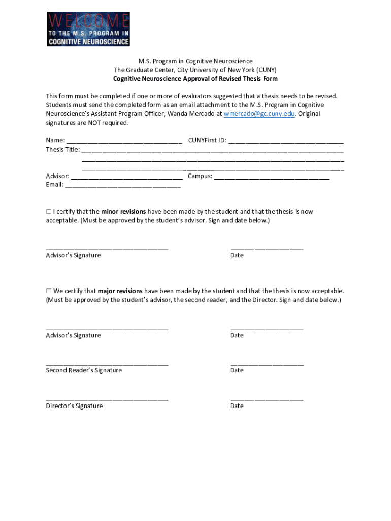 Get the free Cognitive Neuroscience Approval of Revised Thesis Form
