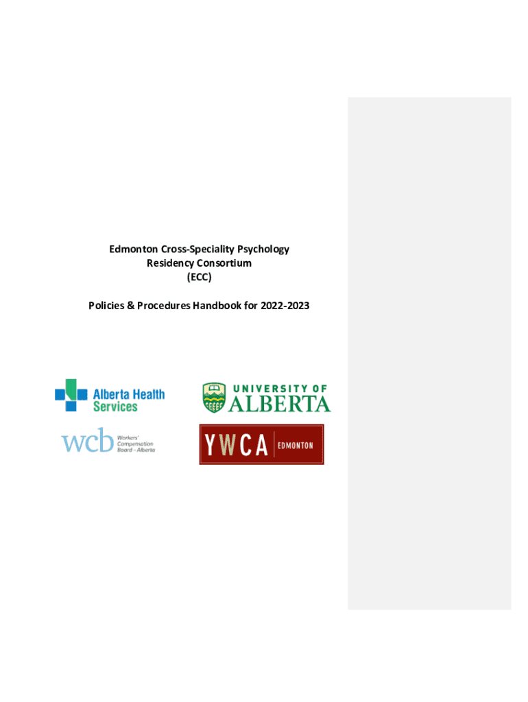 Edmonton CrossSpeciality Psychology Residency Consortium (ECC) Policies & Procedures Handbook for 20222023Table of Contents:Page # 41.0INTRODUCTION1.1 1.2Philosophy of Residency Program Training Goals