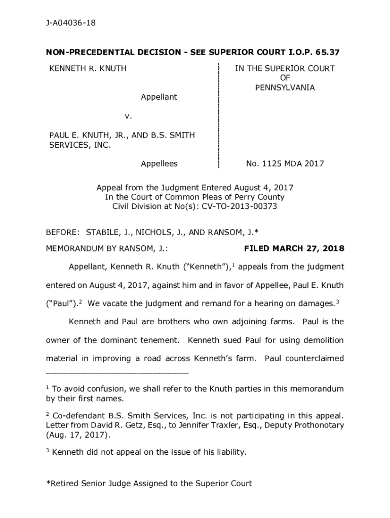JA0403618NONPRECEDENTIAL DECISION SEE SUPERIOR COURT I.O.P. 65.37 KENNETH R. KNUTH THE SUPERIOR COURT OF PENNSYLVANIA Appellant. PAUL E. KNUTH, JR., AND B.S. SMITH SERVICES, INC. AppelleesNo. 1125