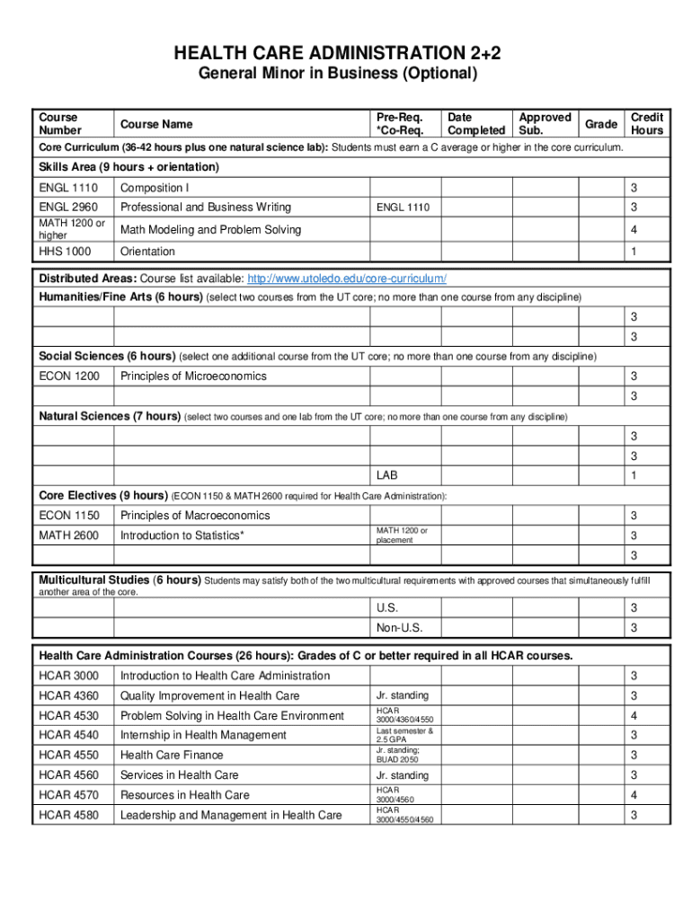 Get the free HEALTH CARE ADMINISTRATION 2+2