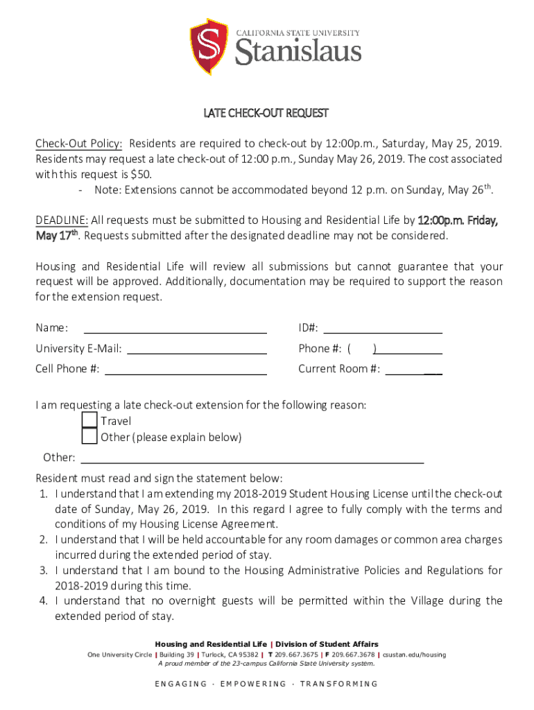 Get the free late check-out request - California State University Stanislaus