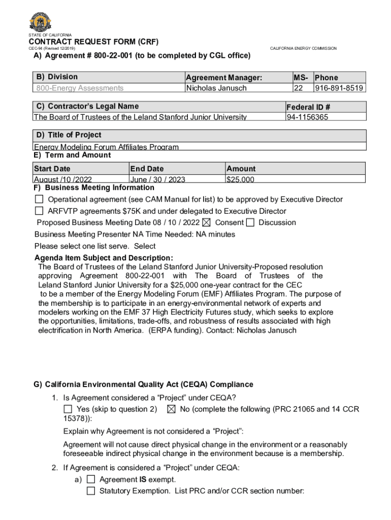 STATE OF CALIFORNIACONTRACT REQUEST FORM (CRF)
