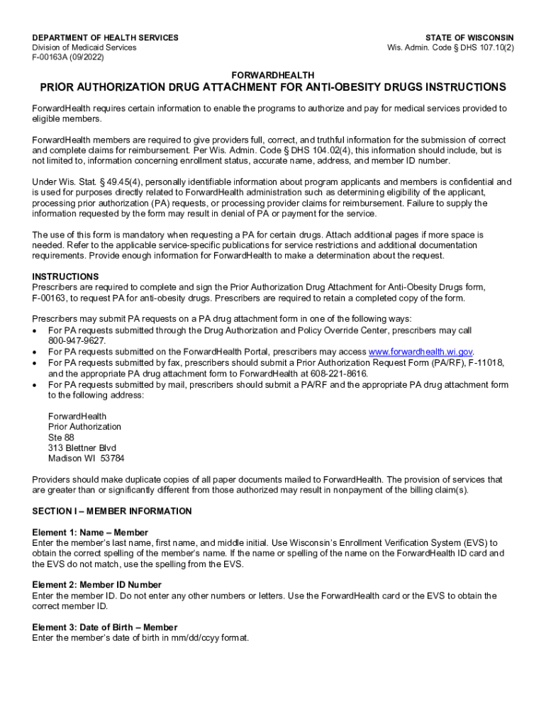 Wis. Admin. Code DHS 107.10(2)FORWARDHEALTHPRIOR AUTHORIZATION DRUG ATTACHMENT FOR ANTIOBESITY DRUGS