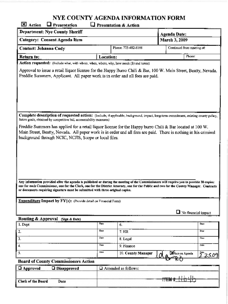 Get the free NYE COUNTY AGENDA INFORMATION FORM 2.ZS,O)