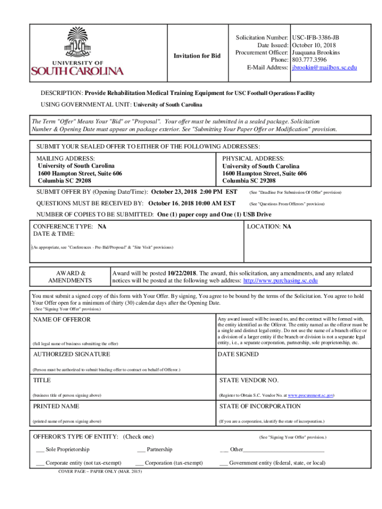 Fill out the invitation for bid solicitation form with accurate and complete information.