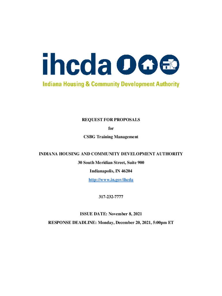 Get the free REQUEST FOR PROPOSALS for CSBG Training ... - IN.gov