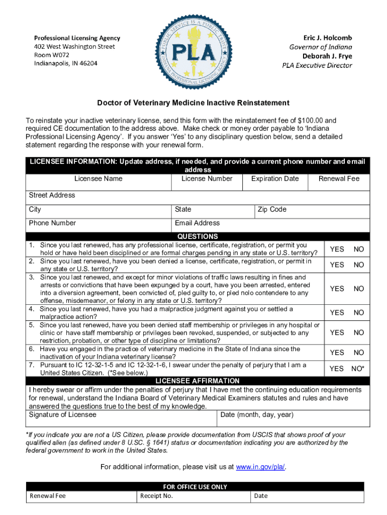 Get the free secure.in.govplafilesVeterinary Medicine Inactive Reinstatement - secure.in.gov