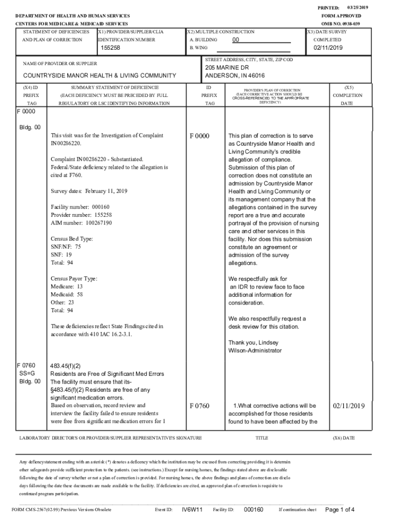 03/25/2019PRINTED: DEPARTMENT OF HEALTH AND HUMAN SERVICESFORM APPROVEDCENTERS FOR MEDICARE & MEDICAID SERVICES STATEMENT OF DEFICIENCIES(X1) PROVIDER/SUPPLIER/LIGAND PLAN OF CORRECTIONIDENTIFICATION