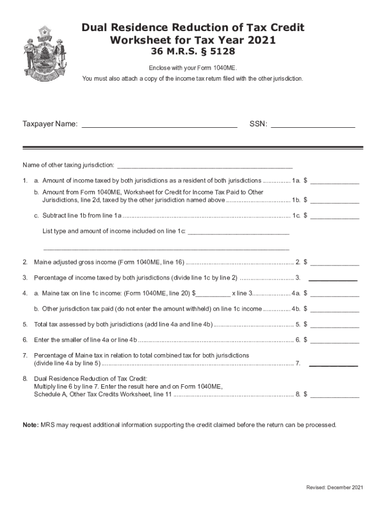 Worksheet for Tax Year 2021Print36 M.R.S. 5128Enclose with your Form 1040ME.