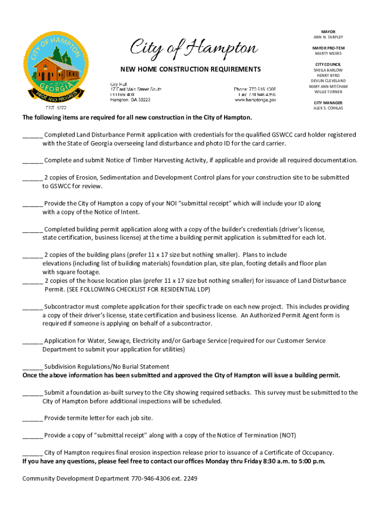 NEW HOME CONSTRUCTION REQUIREMENTSMAYOR ANN N. BARLEY MAYOR STEVE HUTCHISON MAYOR PRO TEM MARTY WEEKS CITY COUNCIL STEPHANIE BODIES HENRY BYRD CITY COUNCIL MARTY WEEKS SHEILA BARLOW MARY ANNOYED MIT